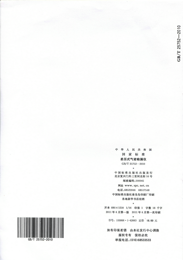 《差壓式氣密檢漏儀》GB/T 25752—2010